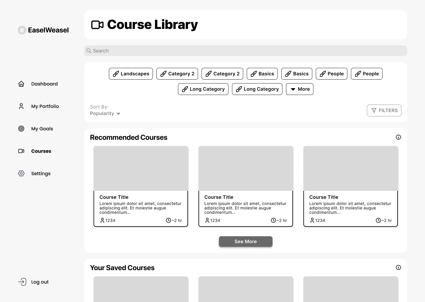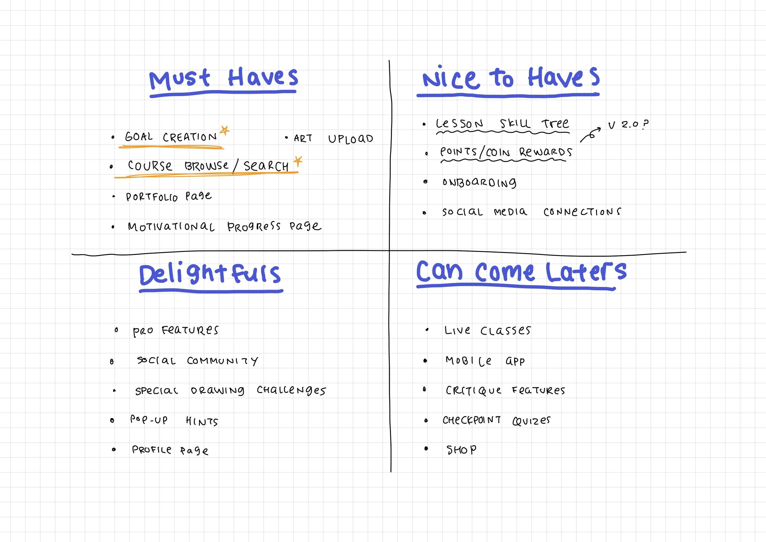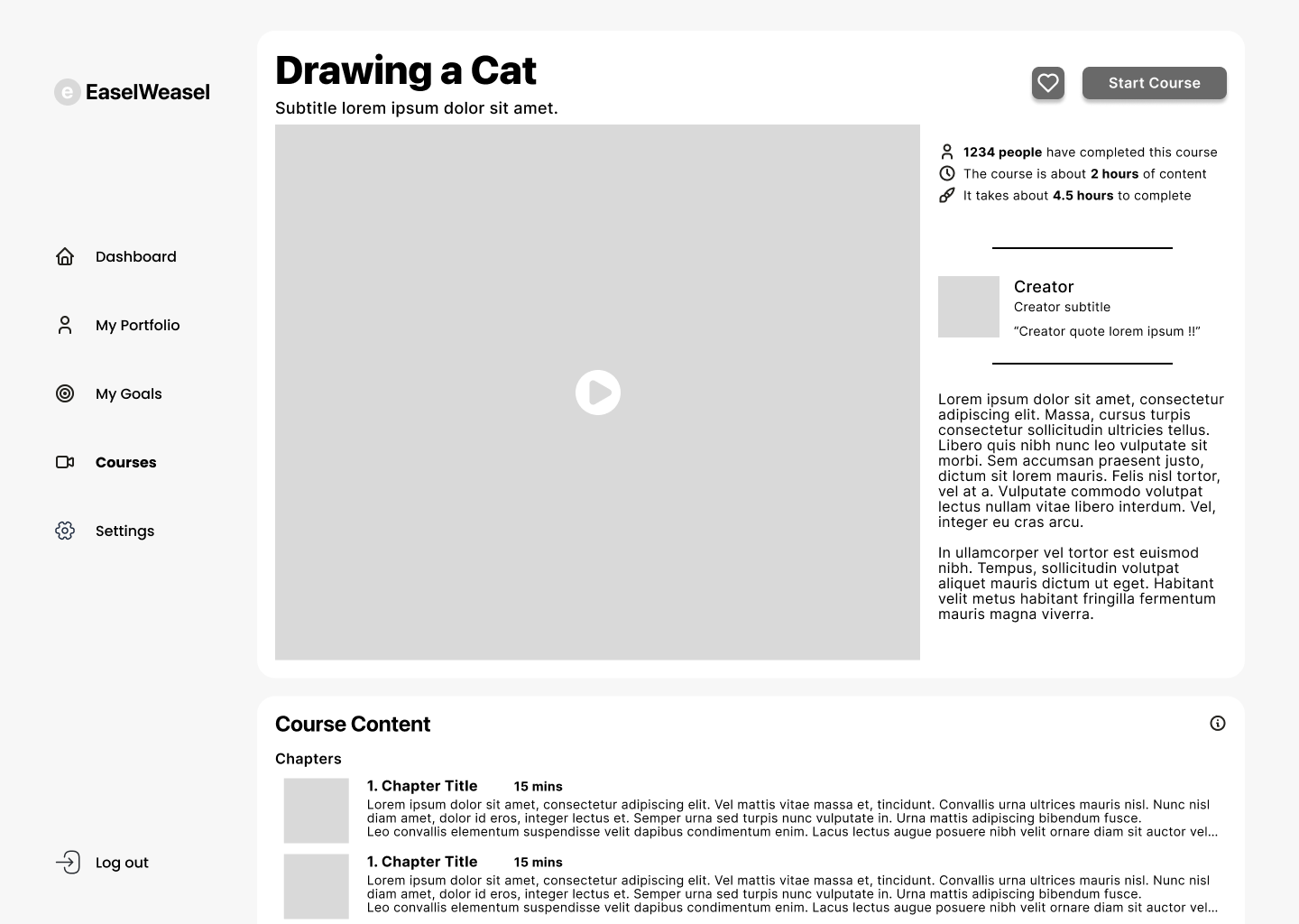 The first and highest priority task was having the user search for, select, and join a course. In this case, that course was learning to draw the superior pet: the feline.