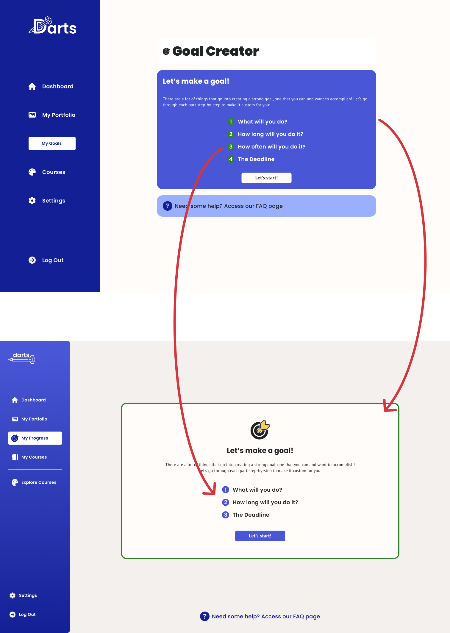 The small dark Goal Creator seemed cramped and intimidating. Brightening the colors and creating a more airy interface improved the experience.
