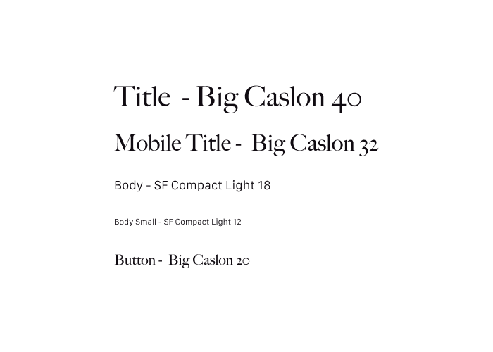 The wireframes were developed to reflect the research and the requests of stakeholders. Inspiration was taken from luxury e-commerce sites to reflect a sense of exclusivity.